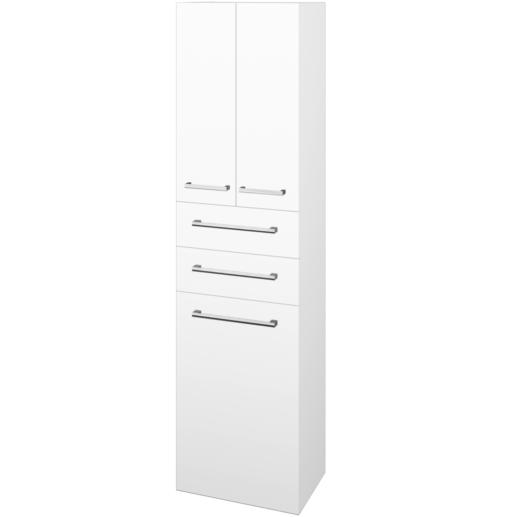 Maximum úložného prostoru nabízí doplňková skříň DOS SVD3Z2K 50, která je díky svému řešení velmi praktická, univerzální a vhodná do středně nebo větších koupelen.  Parametry skříně Skříň DOS SVD3Z2K 50 je konstruována jako závěsná. Díky své výšce - 198,2 cm - vám nabídne opravdu velké množství úložného místa v několika částech. Horní část je dvoudveřová se 2 skleněnými a nastavitelnými policemi. Od spodní části s výklopným košem je oddělena dvojicí praktických zásuvek. Jak dvířka, tak i zásuvky, jsou uloženy na kování značky Hettich s jemným dovíráním a otevírají se pomoci úchytky. Vybírat můžete z pěti typů: T01 - matná oblá úchytka T02 - ocelová kulatá úchytka T03 - chromová hranatá úchytka T04 - chromová úchytka s lesklým povrchem T06 - černá mat Povrchové úpravy Skříň vyrábíme v celé řadě dekorů, dřevodekorů a laků v provedení lesk/mat. Samozřejmostí je také úprava v provedení Individual dle vzorníku RAL/NCS. Sladění s ostatními skříněmi ve vaší koupelně nebylo nikdy jednodušší. Přednosti skříňky: kování značky Hettich dodáváme s celoživotní zárukou. součástí skříně je výklopný koš na prádlo. úložný prostor je díky výšce skříně - 198 mm - opravdu veliký.
