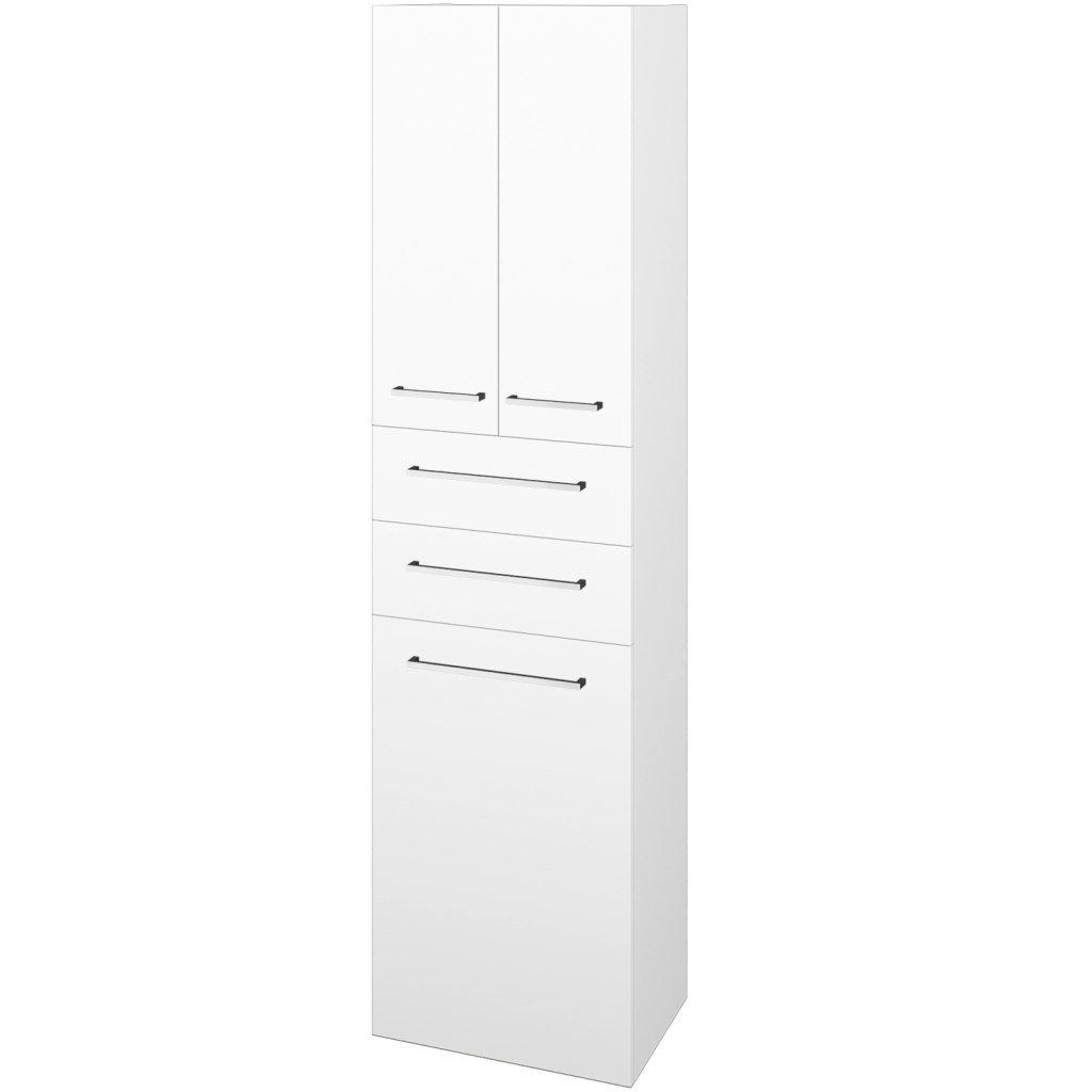 Maximum úložného prostoru nabízí doplňková skříň DOS SVD3Z2K 50, která je díky svému řešení velmi praktická, univerzální a vhodná do středně nebo větších koupelen.  Parametry skříně Skříň DOS SVD3Z2K 50 je konstruována jako závěsná. Díky své výšce - 198,2 cm - vám nabídne opravdu velké množství úložného místa v několika částech. Horní část je dvoudveřová se 2 skleněnými a nastavitelnými policemi. Od spodní části s výklopným košem je oddělena dvojicí praktických zásuvek. Jak dvířka, tak i zásuvky, jsou uloženy na kování značky Hettich s jemným dovíráním a otevírají se pomoci úchytky. Vybírat můžete z pěti typů: T01 - matná oblá úchytka T02 - ocelová kulatá úchytka T03 - chromová hranatá úchytka T04 - chromová úchytka s lesklým povrchem T06 - černá mat Povrchové úpravy Skříň vyrábíme v celé řadě dekorů, dřevodekorů a laků v provedení lesk/mat. Samozřejmostí je také úprava v provedení Individual dle vzorníku RAL/NCS. Sladění s ostatními skříněmi ve vaší koupelně nebylo nikdy jednodušší. Přednosti skříňky: kování značky Hettich dodáváme s celoživotní zárukou. součástí skříně je výklopný koš na prádlo. úložný prostor je díky výšce skříně - 198 mm - opravdu veliký.