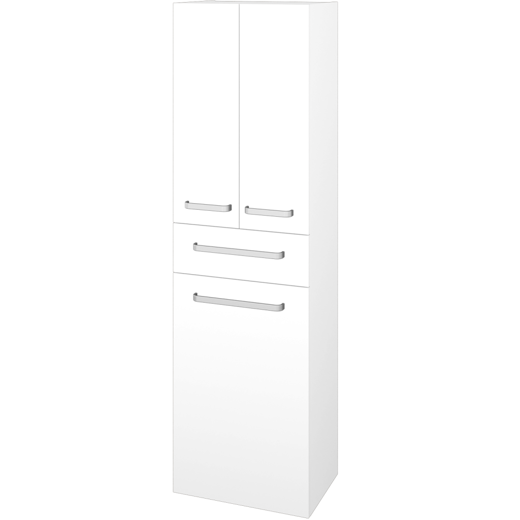 Objemný úložný prostor, kombinovaný s prostorem pro špinavé prádlo, poskytuje vysoká doplňková skříň DOS SVD3ZK 50. Pohodlně v ní uložíte vše potřebné. Od malých drobností do praktické zásuvky, až po větší předměty jako osušky, prací prášky apod. Parametry skříně Vysoká skříň DOS SVD3ZK 50 je konstruována jako závěsná. V její horní části se nachází dvojice dvířek zpřístupnující velký prostor, dělený dvojicí skleněných a nastavitelných polic. Ve střední části skříně je zásuvka, na kterou navazuje část s výklopným košem na prádlo. Dvířka a zásuvka jsou uloženy na kování značky Hettich s tlumeným dovíráním, na které dáváme doživotní záruku kvality. Dvířka i zásuvky se otevírají pomocí úchytek. Celkem můžete vybírat z pěti typů:  T01 - matná oblá úchytka T02 - ocelová kulatá úchytka T03 - chromová hranatá úchytka T04 - chromová úchytka s lesklým povrchem T06 - černá mat  Povrchové úpravy Skříň vyrábíme v celé řadě dekorů, dřevodekorů a laků v provedení lesk/mat. Samozřejmostí je také úprava v provedení Individual dle vzorníku RAL/NCS. Sladění s ostatními skříněmi ve vaší koupelně nebylo nikdy jednodušší. Přednosti skříňky: kování značky Hettich dodáváme s celoživotní zárukou. objemný úložný prostor. součástí skříně je výklopný koš na prádlo. dvojice skleněných polic je volitelně nastavitelná.