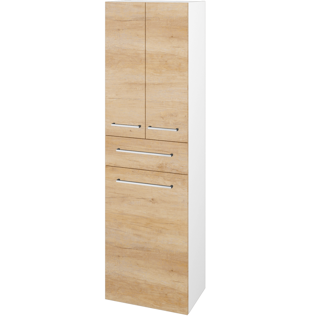 Objemný úložný prostor, kombinovaný s prostorem pro špinavé prádlo, poskytuje vysoká doplňková skříň DOS SVD3ZK 50. Pohodlně v ní uložíte vše potřebné. Od malých drobností do praktické zásuvky, až po větší předměty jako osušky, prací prášky apod. Parametry skříně Vysoká skříň DOS SVD3ZK 50 je konstruována jako závěsná. V její horní části se nachází dvojice dvířek zpřístupnující velký prostor, dělený dvojicí skleněných a nastavitelných polic. Ve střední části skříně je zásuvka, na kterou navazuje část s výklopným košem na prádlo. Dvířka a zásuvka jsou uloženy na kování značky Hettich s tlumeným dovíráním, na které dáváme doživotní záruku kvality. Dvířka i zásuvky se otevírají pomocí úchytek. Celkem můžete vybírat z pěti typů:  T01 - matná oblá úchytka T02 - ocelová kulatá úchytka T03 - chromová hranatá úchytka T04 - chromová úchytka s lesklým povrchem T06 - černá mat  Povrchové úpravy Skříň vyrábíme v celé řadě dekorů, dřevodekorů a laků v provedení lesk/mat. Samozřejmostí je také úprava v provedení Individual dle vzorníku RAL/NCS. Sladění s ostatními skříněmi ve vaší koupelně nebylo nikdy jednodušší. Přednosti skříňky: kování značky Hettich dodáváme s celoživotní zárukou. objemný úložný prostor. součástí skříně je výklopný koš na prádlo. dvojice skleněných polic je volitelně nastavitelná.