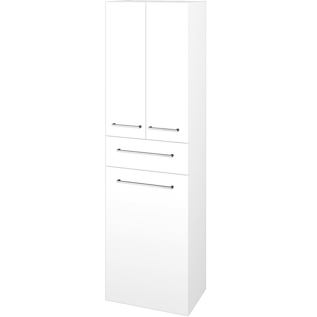 Objemný úložný prostor, kombinovaný s prostorem pro špinavé prádlo, poskytuje vysoká doplňková skříň DOS SVD3ZK 50. Pohodlně v ní uložíte vše potřebné. Od malých drobností do praktické zásuvky, až po větší předměty jako osušky, prací prášky apod. Parametry skříně Vysoká skříň DOS SVD3ZK 50 je konstruována jako závěsná. V její horní části se nachází dvojice dvířek zpřístupnující velký prostor, dělený dvojicí skleněných a nastavitelných polic. Ve střední části skříně je zásuvka, na kterou navazuje část s výklopným košem na prádlo. Dvířka a zásuvka jsou uloženy na kování značky Hettich s tlumeným dovíráním, na které dáváme doživotní záruku kvality. Dvířka i zásuvky se otevírají pomocí úchytek. Celkem můžete vybírat z pěti typů:  T01 - matná oblá úchytka T02 - ocelová kulatá úchytka T03 - chromová hranatá úchytka T04 - chromová úchytka s lesklým povrchem T06 - černá mat  Povrchové úpravy Skříň vyrábíme v celé řadě dekorů, dřevodekorů a laků v provedení lesk/mat. Samozřejmostí je také úprava v provedení Individual dle vzorníku RAL/NCS. Sladění s ostatními skříněmi ve vaší koupelně nebylo nikdy jednodušší. Přednosti skříňky: kování značky Hettich dodáváme s celoživotní zárukou. objemný úložný prostor. součástí skříně je výklopný koš na prádlo. dvojice skleněných polic je volitelně nastavitelná.