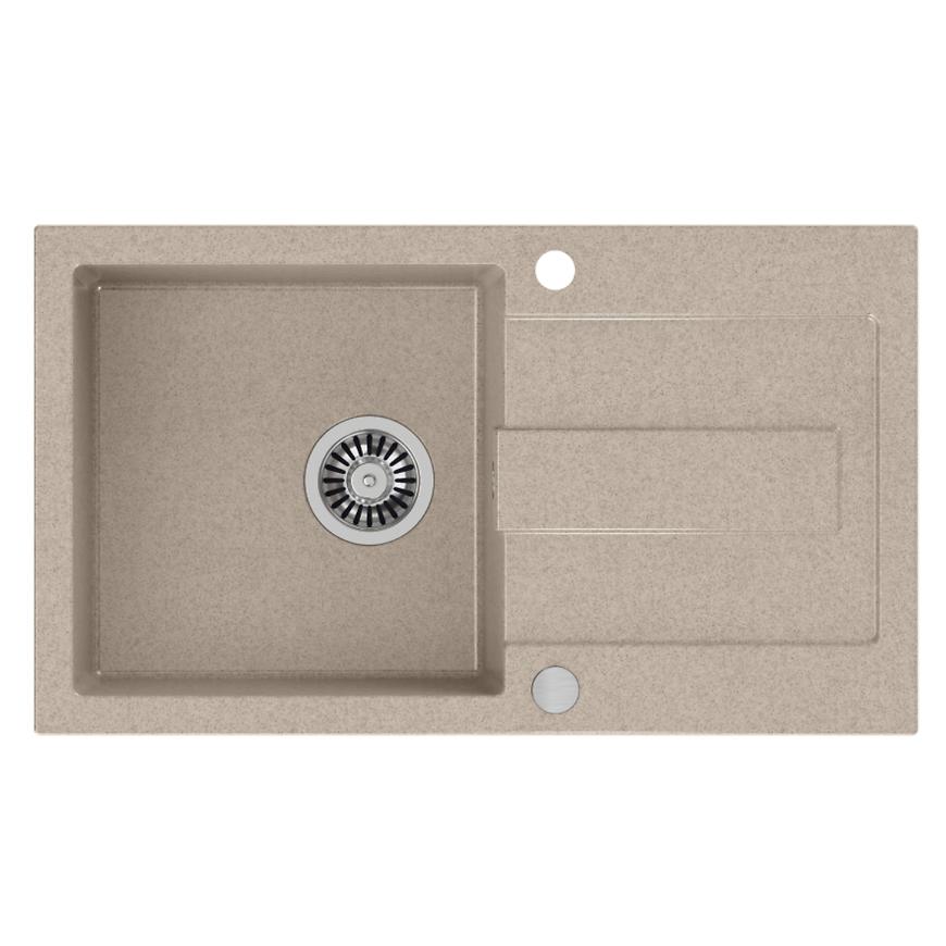 MEXEN/S - Tomas granitový dřez 2-bowl včetně baterie Elia, béžová 6516-69-670101-50