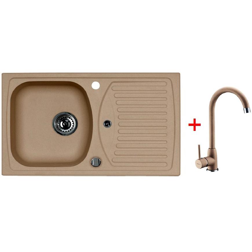 MEXEN/S - Enzo granitový dřez s odkapávačem včetně baterie Duo, šedá 6506-71-671701-07-B