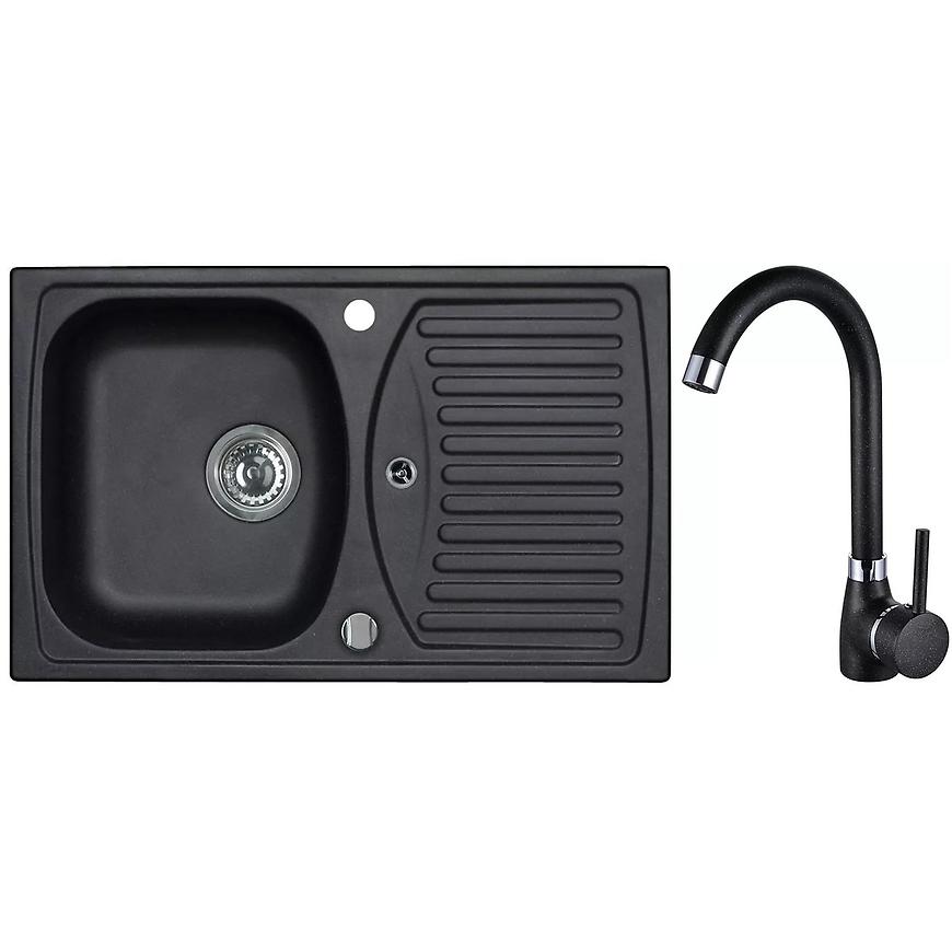 MEXEN/S - Vito granitový dřez 1-miska včetně baterie Elia, černá/zlatá metalik 6503-75-670101-50