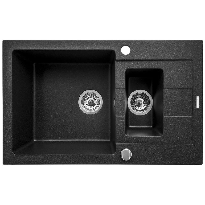 MEXEN/S - Matias granitový dřez 1.5 s odkapávačem včetně baterie Rita, černý/stříbrný 6502-73-670300-70-B