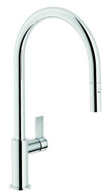 Dřezová páková baterie, mosaz, povrch chrom, s odnímatelnou sprchou Materiál: mosaz Povrchová úprava: chrom Výsuvná sprcha Montáž: jednootvorová (průměr otvoru 35 mm) Výška baterie: 430 mm Délka výtoku: 224 mm Otočná o 360° Úhel otevření páky: 90° Flexibilní připojovací hadice
