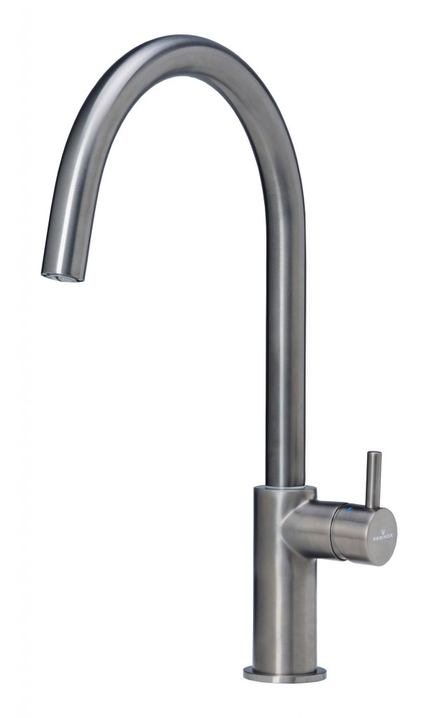 Dřezová páková baterie, mosaz, povrch PVD Gun Metal Silver, vhodná ke dřezům New York Gun Metal Silver Materiál: mosaz Povrchová úprava: PVD Gun Metal Silver Vhodná ke dřezům Reginox New York Gun Metal Silver Montáž: jednootvorová (průměr otvoru 35 mm) Výška baterie: 375 mm Délka výtoku: 222 mm Otočná o 360° Úhel otevření páky: 90° Flexibilní připojovací hadice