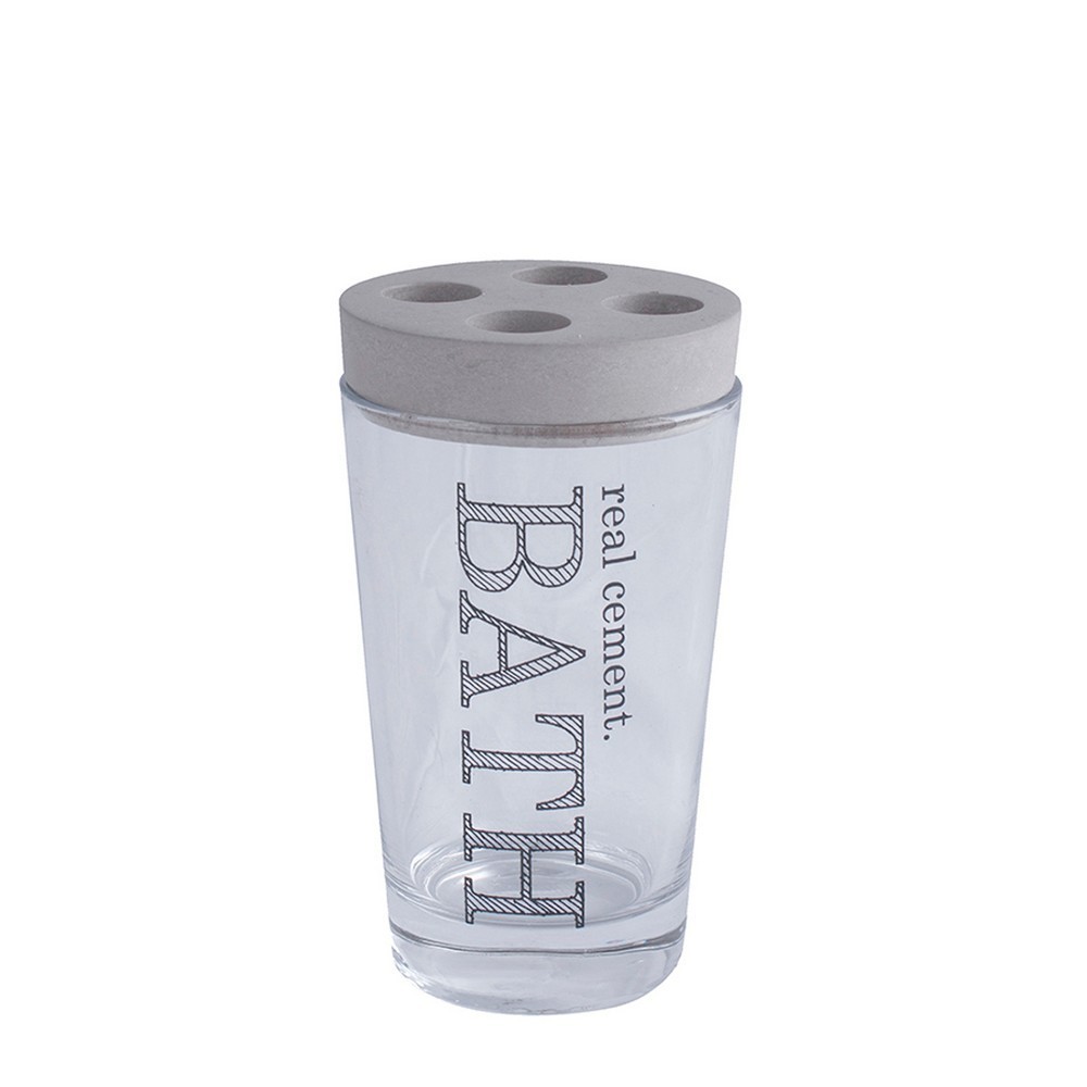 Držák na zubní kartáčky s nápisem BATH, vyrobený z plastu.