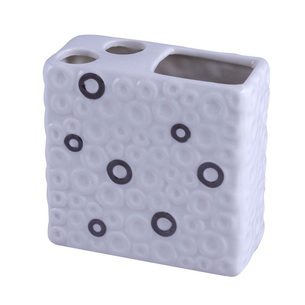 Kelímek na zubní kartáček RINGO. Jeho bílý plášť je zdoben kruhy.
