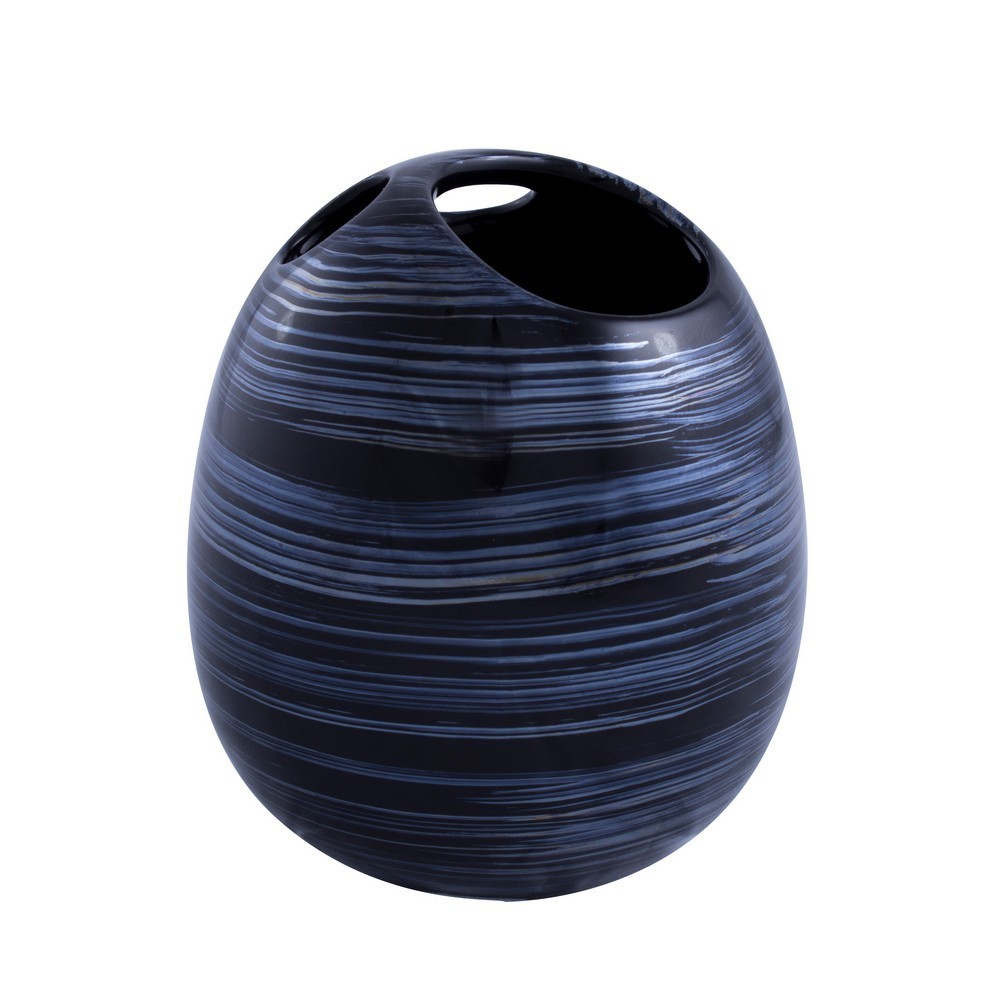 Elegantní a stylový držák na zubní kartáčky ze série ABISSO. Na černém plášti jsou vodorovné, nepravidelné šedé kruhy.