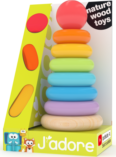 Hračka z přírodního dřeva. Základní hra, která zabaví i ty nejmenší, vhodná pro každodenní učení se nejrůznějším dovednostem! Vkládání jednotlivých kroužků na stojan děti procvičují jemné motoriky a obratnost. Hra, kde se děti učí poznávat velikosti, protiklady (velký/malý, nahoru/dolů), pomáhá rozvíjet intelekt a logické myšlení. Díky veselému designu a funkci hračky se děti učí poznávat základní barvy. Hračka je vhodná pro děti od 12 měsíců.