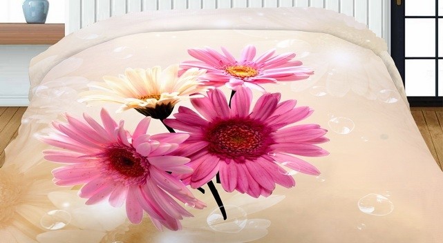 DumDekorace 3D oboustranný přehoz krémové barvy s růžovými květy Šířka: 200 cm | Délka: 220 cm 2ks 40x40 cm (standard zdarma) Šířka: 200 cm | Délka: 220 cm