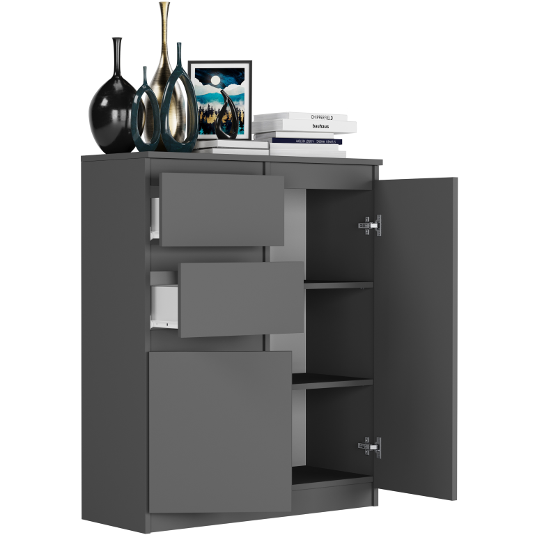 Komoda je ideální volbou pro ty, kteří hledají moderní, ale funkční nábytek do obývacího pokoje, kanceláře nebo studentského pokoje. Její minimalistický design a hladké, bez zadrhávání čelní strany vytvářejí čistý vzhled, který se hodí do každého moderního i klasického interiéru. Konstrukce komody je pevná a stabilní díky vysoce kvalitní laminované desce, která je odolná vůči poškrábání a běžnému opotřebení. Výška 98 cm a šířka 80 cm poskytují ideální poměr mezi úložným prostorem a kompaktními rozměry. Zásuvky nabízejí dostatek místa na oblečení, dokumenty nebo doplňky a zároveň umožňují přehlednou organizaci. Komoda se snadno sestavuje podle přiloženého návodu, obsahuje všechny potřebné komponenty. Specifikace: Barva: k dispozici různé barevné povrchové úpravy Materiál: laminovaná dřevotříska Výška: 98 cm Šířka: 80 cm Hloubka: 40 cm Styl: moderní, minimalistický Montáž: nábytek pro svépomocnou montáž