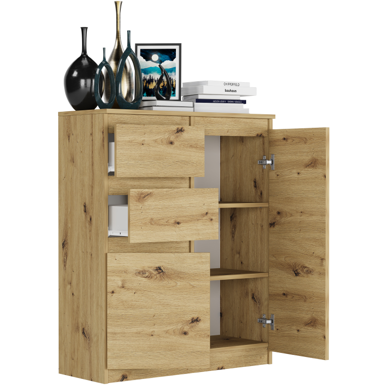 Komoda je ideální volbou pro ty, kteří hledají moderní, ale funkční nábytek do obývacího pokoje, kanceláře nebo studentského pokoje. Její minimalistický design a hladké, bez zadrhávání čelní strany vytvářejí čistý vzhled, který se hodí do každého moderního i klasického interiéru. Konstrukce komody je pevná a stabilní díky vysoce kvalitní laminované desce, která je odolná vůči poškrábání a běžnému opotřebení. Výška 98 cm a šířka 80 cm poskytují ideální poměr mezi úložným prostorem a kompaktními rozměry. Zásuvky nabízejí dostatek místa na oblečení, dokumenty nebo doplňky a zároveň umožňují přehlednou organizaci. Komoda se snadno sestavuje podle přiloženého návodu, obsahuje všechny potřebné komponenty. Specifikace: Barva: k dispozici různé barevné povrchové úpravy Materiál: laminovaná dřevotříska Výška: 98 cm Šířka: 80 cm Hloubka: 40 cm Styl: moderní, minimalistický Montáž: nábytek pro svépomocnou montáž