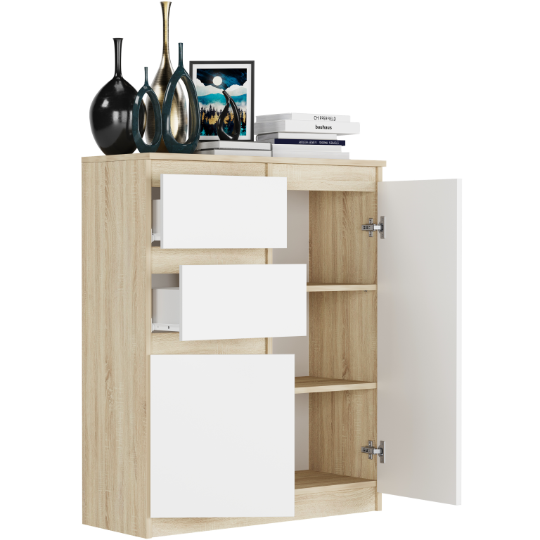 Komoda je ideální volbou pro ty, kteří hledají moderní, ale funkční nábytek do obývacího pokoje, kanceláře nebo studentského pokoje. Její minimalistický design a hladké, bez zadrhávání čelní strany vytvářejí čistý vzhled, který se hodí do každého moderního i klasického interiéru. Konstrukce komody je pevná a stabilní díky vysoce kvalitní laminované desce, která je odolná vůči poškrábání a běžnému opotřebení. Výška 98 cm a šířka 80 cm poskytují ideální poměr mezi úložným prostorem a kompaktními rozměry. Zásuvky nabízejí dostatek místa na oblečení, dokumenty nebo doplňky a zároveň umožňují přehlednou organizaci. Komoda se snadno sestavuje podle přiloženého návodu, obsahuje všechny potřebné komponenty. Specifikace: Barva: k dispozici různé barevné povrchové úpravy Materiál: laminovaná dřevotříska Výška: 98 cm Šířka: 80 cm Hloubka: 40 cm Styl: moderní, minimalistický Montáž: nábytek pro svépomocnou montáž
