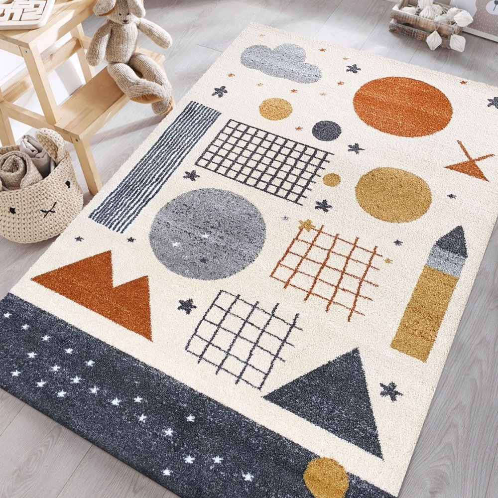 DumDekorace Dětský koberec v jemných barvách s geometrickými tvary Šířka: 120 cm | Délka: 170 cm