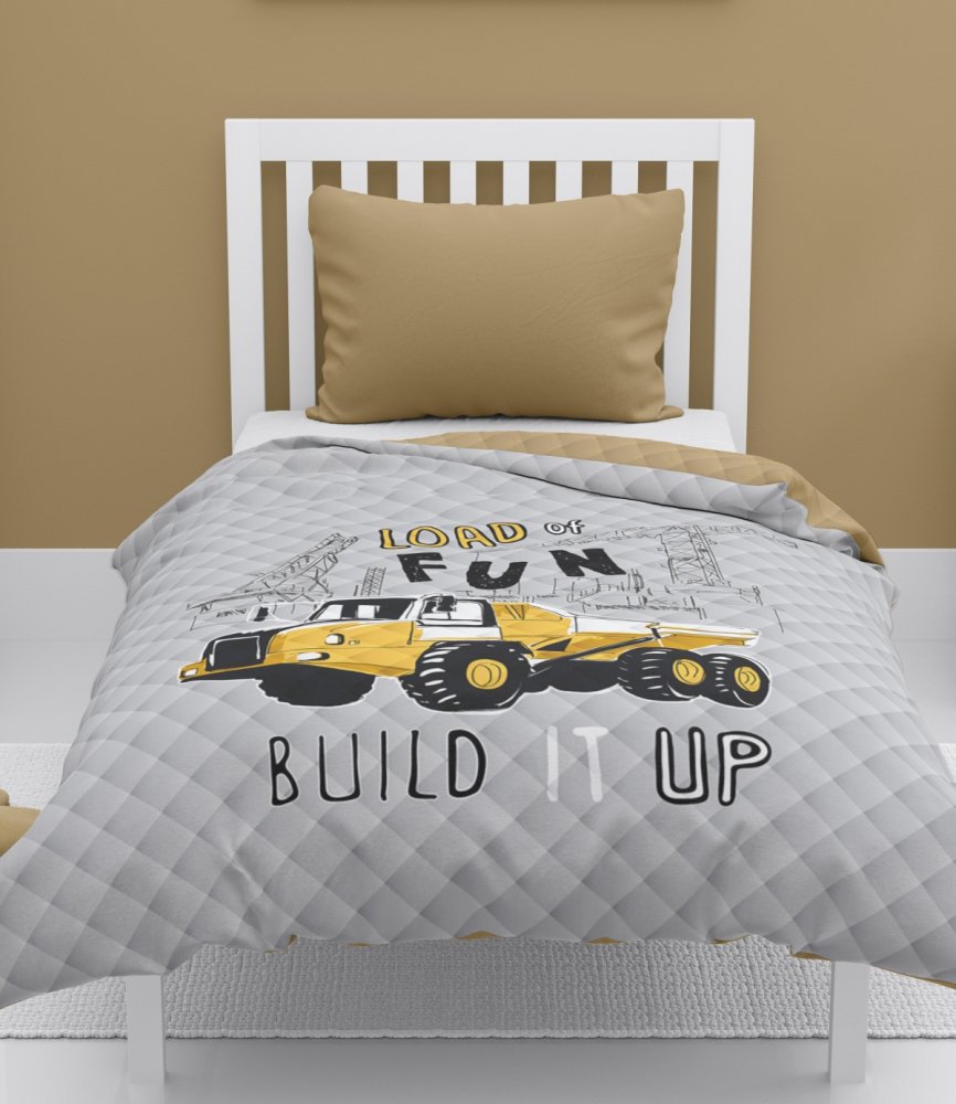 Proměňte pokoj svého dítěte v útulné a hravé místo díky našemu kvalitnímu přehozu! Přehoz je vyroben z příjemných měkkých materiálů, které zaručují pohodlí při odpočinku a spánku. Měkká látka je šetrná k dětské pokožce a odolná proti poškození, takže dlouho vydrží. Přehoz je lehký, snadno se s ním manipuluje a je skvělý pro každodenní použití. Originální barevné motivy rozzáří každý pokojíček a podpoří dětskou fantazii. Díky svým praktickým rozměrům se skvěle hodí na standardní dětské postele. Specifikace: Barva: šedá Materiál: 100% polyester Technologie: lisování za tepla (prošívání bez nití) Rozměrová tolerance: +/- 5% Informace o praní jsou na štítku Přehoz je dodáván bez povlaku na polštář