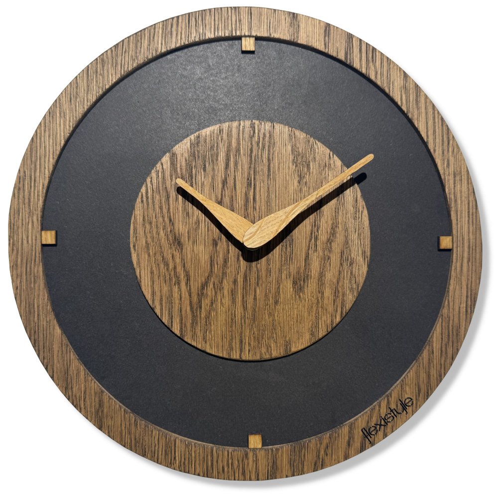 Vneste do svého domova harmonii přírody a nadčasového designu. Nástěnné hodiny z dubového dřeva OAK FLOW spojují přírodní krásu dřeva s moderní jednoduchostí tvarů. Číselník je vyroben z vysoce kvalitní dubové dýhy, která vyniká autentickou kresbou dřeva. Jemné dřevěné ručičky dotvářejí minimalistický charakter a elegantně vypadají v každém interiéru. Tento model v odstínu hnědo-dubové kombinace vnáší do prostoru teplou a útulnou atmosféru - ideální pro moderní i klasické aranžmá. Hodiny jsou vybaveny velmi tichým mechanismem bez rušivého tikání, což z nich činí ideální volbu do obývacího pokoje, ložnice nebo kanceláře. Precizní zpracování a solidní konstrukce zaručují dlouhou životnost i spolehlivost. Specifikace: Materiál: dubová dýha / MDF Rozměry ciferníku: 30 cm Barva: dub / černá Mechanismus: tichý, bez tikajícího efektu Hodiny + AA baterie