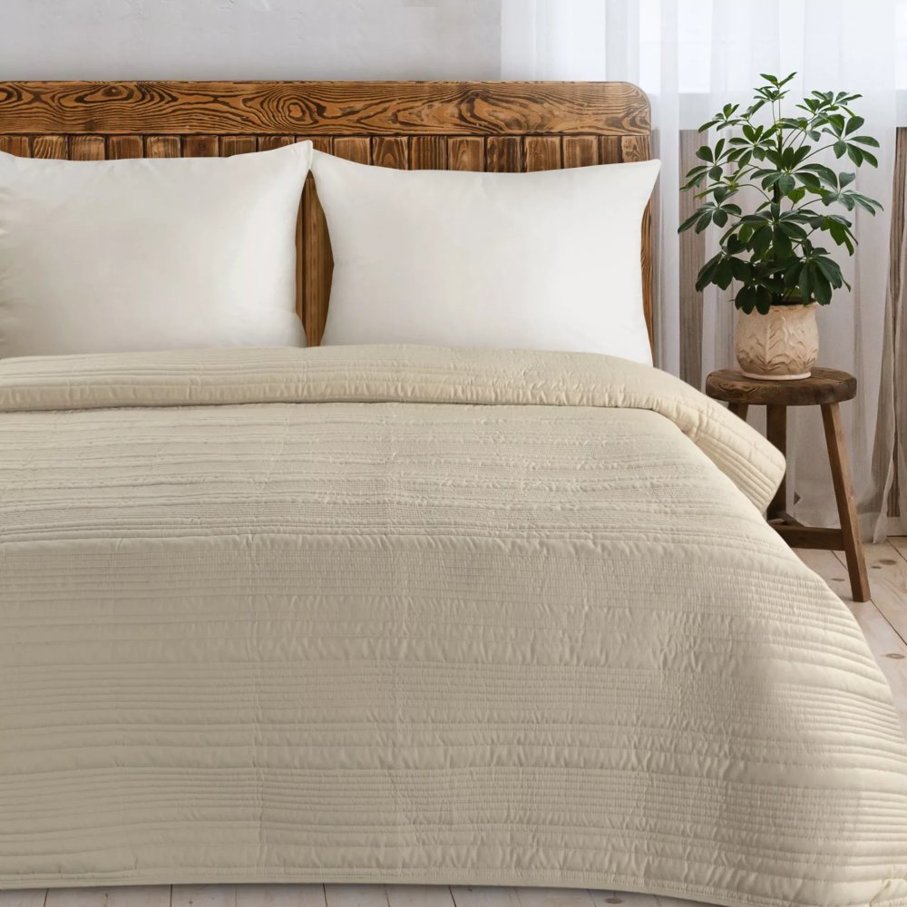 DumDekorace Elegantní přehoz TARA z matné látky s prošívaným vzorem - béžový Šířka: 170 cm | Délka: 210 cm