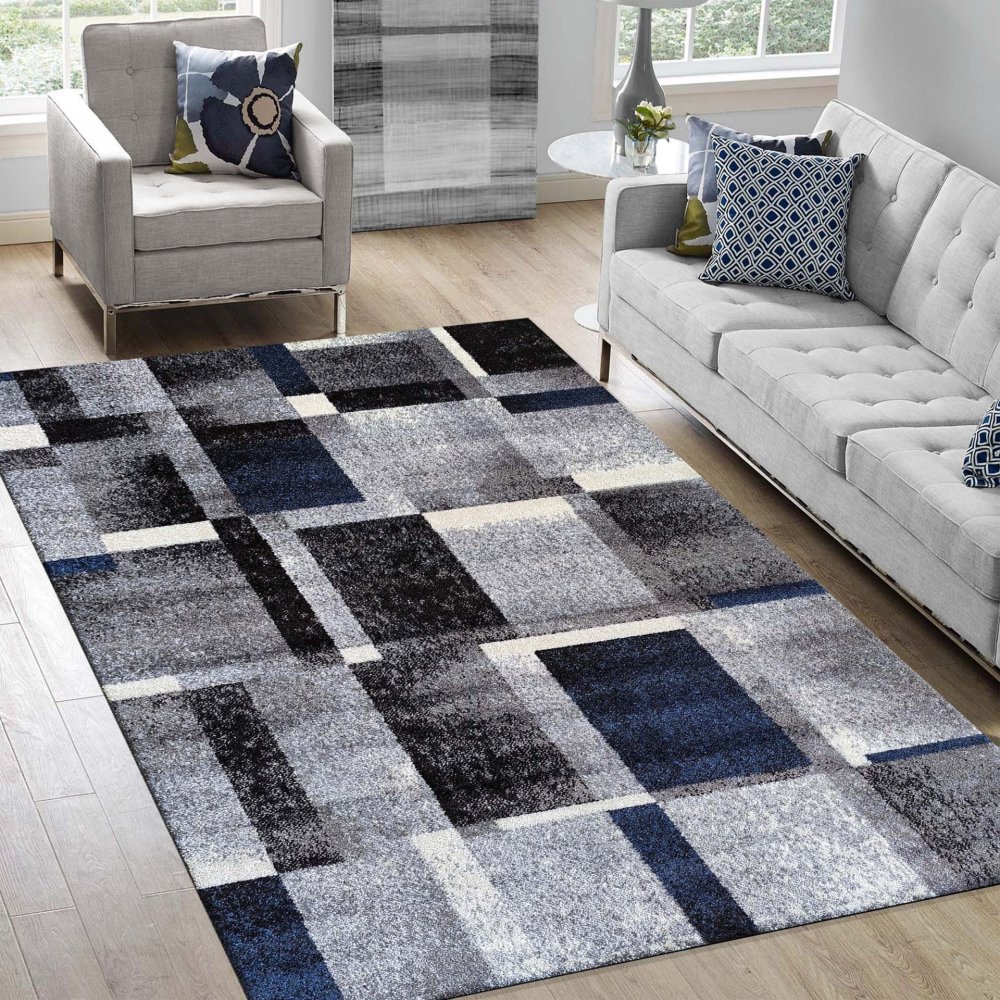 DumDekorace DumDekorace Terasový šedý koberec modrým vzorem Šířka: cm Délka: cm