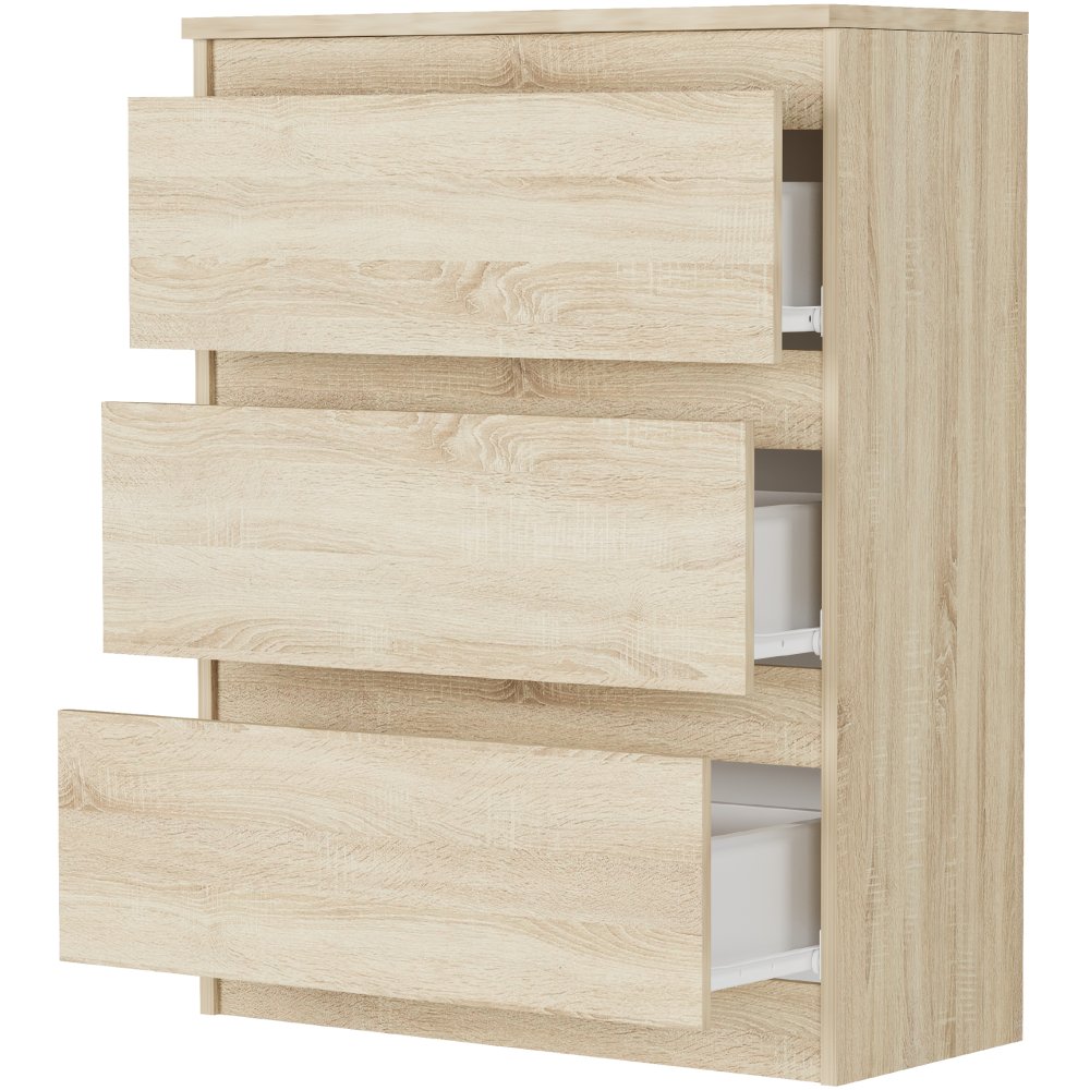 Kompaktní a elegantní komoda je ideálním doplňkem pro každého, kdo hledá kombinaci moderního designu a praktického využití. Díky svému nadčasovému designu se perfektně hodí do různých typů interiérů – ať už se jedná o obývací pokoj, pracovnu nebo studentský pokoj. Minimalistický design bez úchytek působí čistě a moderně, zatímco tři prostorné zásuvky nabízejí dostatek místa na oblečení, dokumenty nebo každodenní nezbytnosti. Komoda je vyrobena z vysoce kvalitní laminované dřevotřísky s odolnými PVC hranami, které chrání nábytek před poškozením a prodlužují jeho životnost. Rozměry komody jsou ideální pro menší prostory bez kompromisů v oblasti úložného prostoru. Specifikace: Barva: k dispozici různé barevné povrchové úpravy Materiál: laminovaná dřevotříska Výška: 76 cm Šířka: 70 cm Hloubka: 40 cm Styl: moderní, minimalistický Montáž: nábytek pro svépomocnou montáž