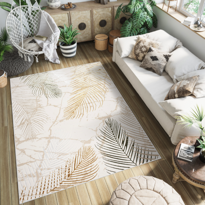 Domů Nábytek Bytový textil Bytový textil do obývacího pokoje Koberce a koberečky DumDekorace Luxusní koberec se vzorem listů GOLDEN Šířka: 120 cm | Délka: 170 cm