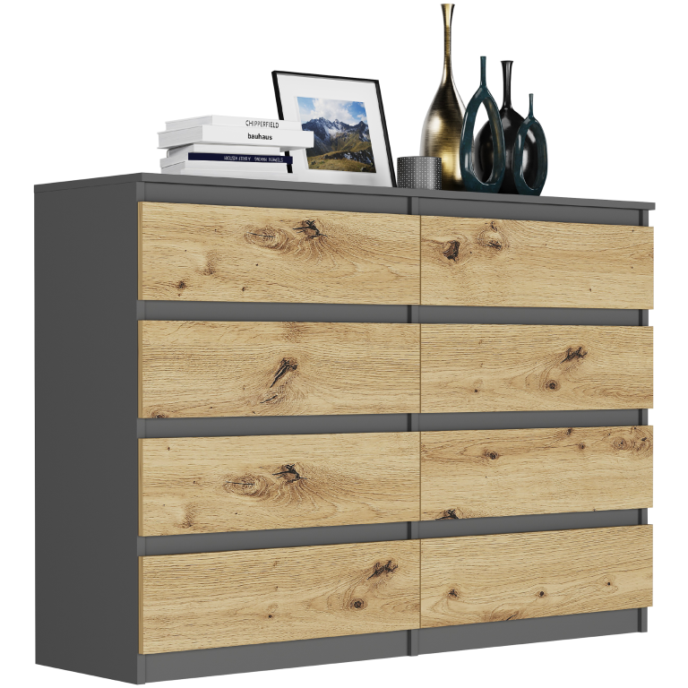 Domů Nábytek Ložnice Skříně a komody Komody DumDekorace Moderní komoda s 8 zásuvkami R-140-S8 - různé barevné varianty antracit mix artisan