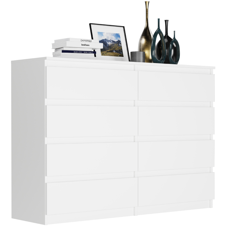 Domů Nábytek Ložnice Skříně a komody Komody DumDekorace Moderní komoda s 8 zásuvkami R-140-S8 - různé barevné varianty Bílá