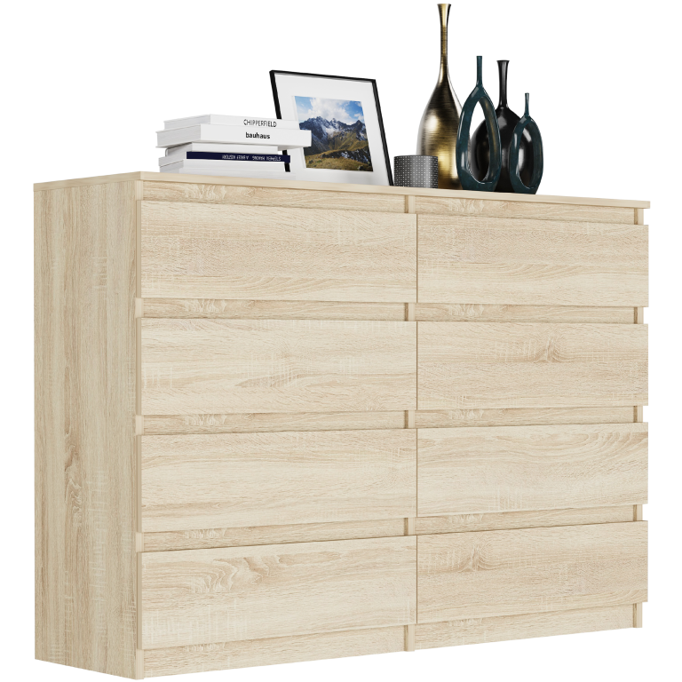 DumDekorace Moderní komoda s 8 zásuvkami R-140-S8 - různé barevné varianty sonoma
