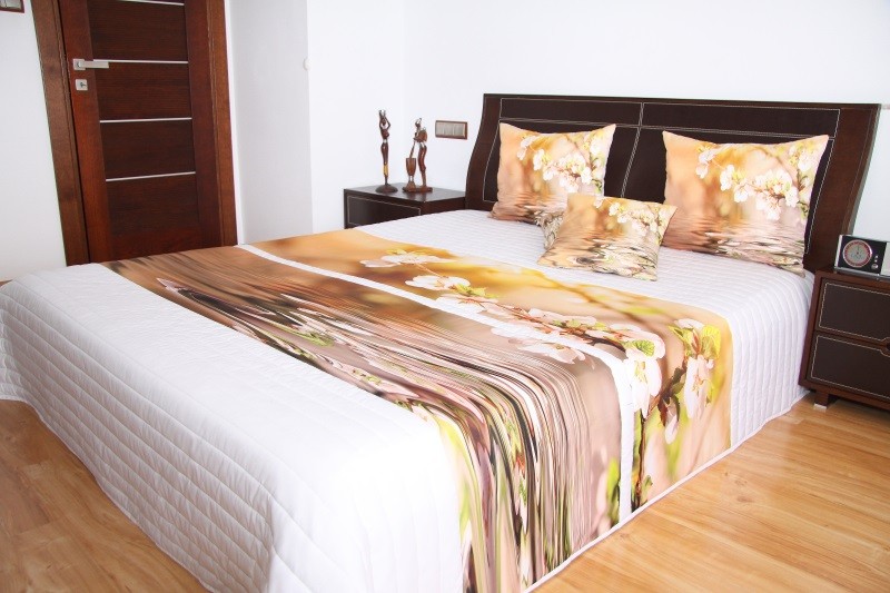 DumDekorace Přehoz na postel bílé barvy s motivem hnědých květů