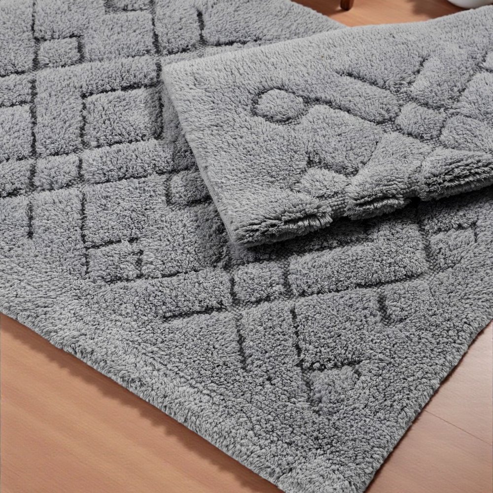 Sada koupelnových koberců v jemně barvě je ideální volbou pro každého, kdo chce do koupelny vnést pocit čistoty, tepla a pohodlí. Dva praktické rozměry 60 × 100 cm a 50 × 60 cm umožňují umístit větší koberec vedle vany nebo sprchy a menší vedle umyvadla nebo toalety, čímž vytvoříte jednotný a harmonický vzhled prostoru. Koupelnové předložky jsou vyrobeny ze 100% vysoce kvalitní bavlny, která je příjemná na dotek, dobře absorbuje vlhkost a zachovává si tvar i při pravidelném používání. Materiál je odolný vůči deformaci a oděru, takže předložky zůstávají krásné i po dlouhé době. Lze prát v pračce do 30 °C na jemný program, což usnadňuje údržbu a zajišťuje dlouhodobou hygienu. Sada je vhodná i do koupelen s podlahovým vytápěním, takže si můžete užívat maximálního pohodlí bez omezení. Krémová barva se snadno kombinuje s různými styly zařízení - od moderního až po klasický interiér. Specifikace: Typ produktu: sada koupelnových předložek 2 ks Barva: šedá Materiál: 100% bavlna Lze prát v pračce: 30 °C Vhodné pro podlahové vytápění: ano Výška vlasu: cca 12 mm Gramáž: 1000 g/m² Tvar: obdélník Použití: interiér Rozměr menší podložky: 50 × 60 cm Rozměr větší rohože: 60 × 100 cm