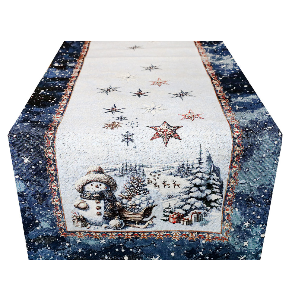 DumDekorace Vánoční gobelínový ubrus s lurexem - Sněhulák a sněhové vločky Šířka: 90 cm | Délka: 90 cm