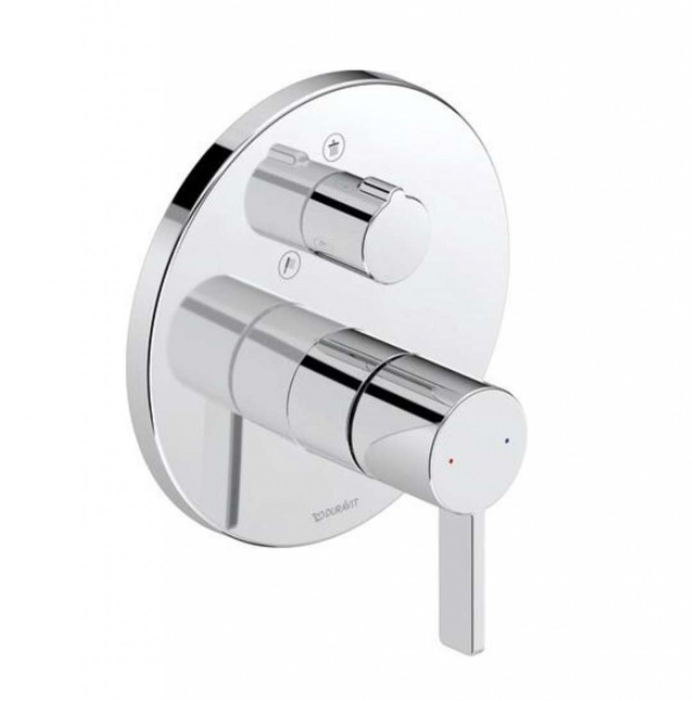 Podomítková sprchová baterie barva chrom pákové ovládání podomítková montáž keramická kartuše průtok 22,5 l/min při tlaku 3 bary kruhová krycí rozeta, průměr 170 mm pro 2 spotřebiče symboly pro ruční a hlavovou sprchu Instalace na montážní těleso, není součástí balení.