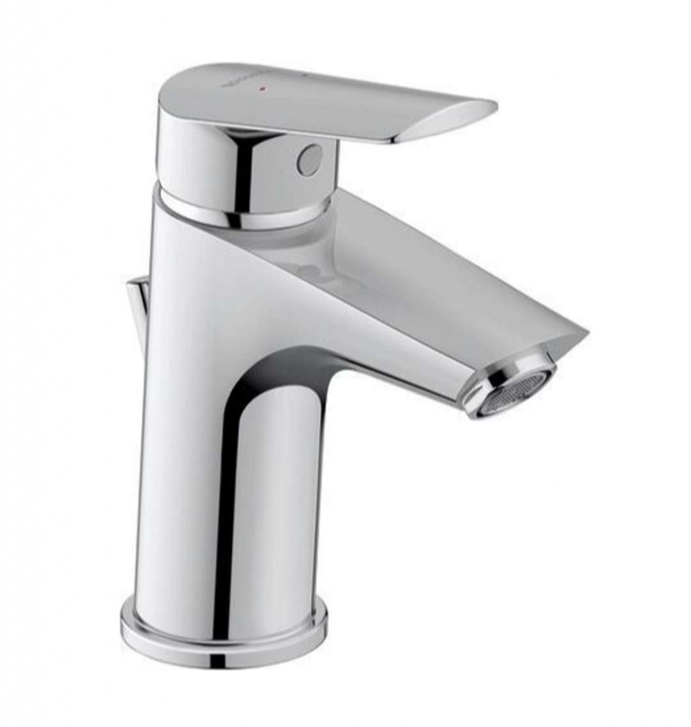 Stojánková umyvadlová baterie s výpustí barva chrom výška baterie 156 mm délka výtoku 100 mm komfortní zóna 91 mm jednootvorová stojánková montáž pákové ovládání ekologická funkce MinusFlow šetřící vodu průtok 3,5 l/min (při tlaku 3 bar) keramická kartuše flexibilní přípojky G 3/8" s odtokovou soupravou ovládanou táhlem s výpustí G 1 1/4"