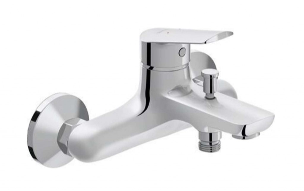 Vanová páková baterie barva chrom nástěnná montáž šířka baterie 216 mm rozteč 150±20 mm pákové ovládání přepínač vana/sprcha, s automatickým resetem keramická kartuše S-přípojky připojení G 1/2"