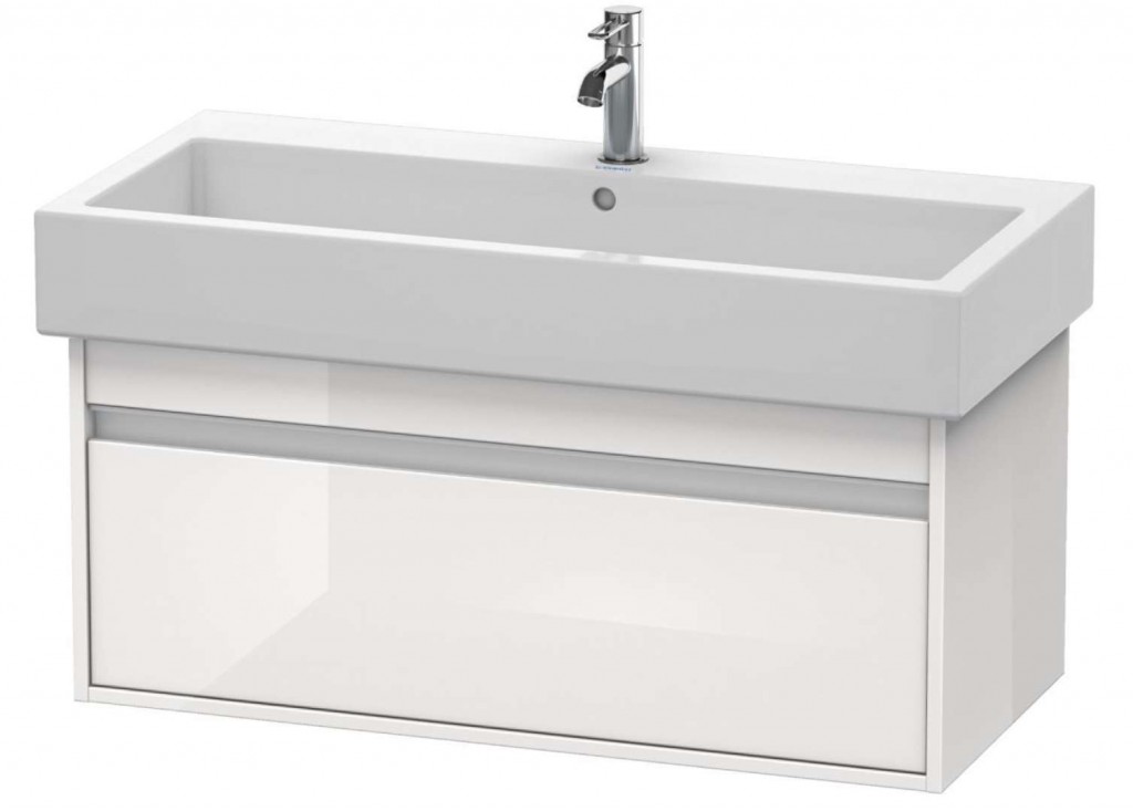 Závěsná skříňka pro umyvadlo rozměry: 410 x 950 x 440 mm materiál: vysoce kompaktní třívrstvá DTD, na obou stranách slisovaná s laminátem HPL, hrany ABS barva: bílá vysoký lesk 1 x velká zásuvka ergonomická úchytka pro otevírání instalace: zavěšením na stěnu, sifon šetřící místo není součástí balení Ilustrativní foto, umyvadlo není součástí balení, je třeba objednat samostatně. (viz. související výrobky)