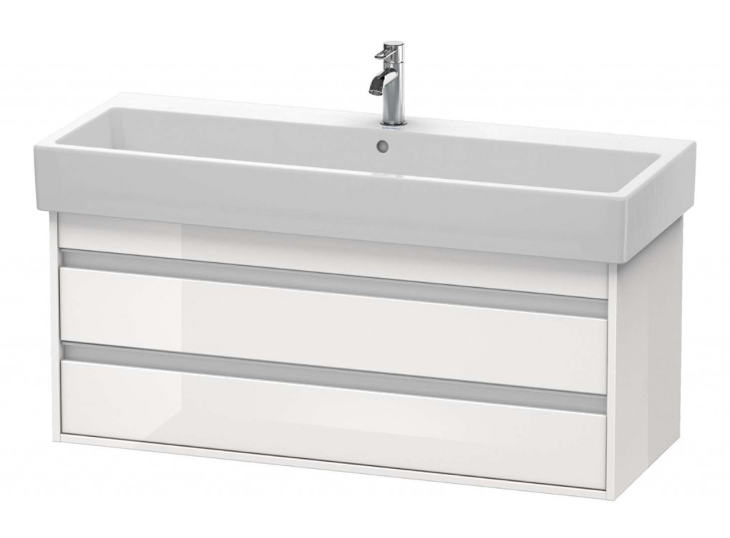 Závěsná skříňka pro umyvadlo rozměry: 480 x 1150 x 440 mm materiál: vysoce kompaktní třívrstvá DTD, na obou stranách slisovaná s laminátem HPL, hrany ABS barva: bílá vysoký lesk 2 x zásuvka, horní zásuvka s výřezem pro sifon a krytkou sifonu ergonomické úchytky pro otevírání instalace: zavěšením na stěnu, sifon šetřící místo není součástí balení Ilustrativní foto, umyvadlo není součástí balení, je třeba objednat samostatně. (viz. související výrobky)