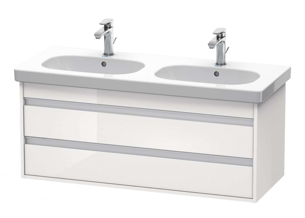 Závěsná skříňka pro dvojumyvadlo rozměry: 480 x 1150 x 455 mm materiál: vysoce kompaktní třívrstvá DTD, na obou stranách slisovaná s laminátem HPL, hrany ABS barva: bílá vysoký lesk 2 x zásuvka, horní zásuvka s výřezem pro sifon a krytkou sifonu ergonomické úchytky pro otevírání instalace: zavěšením na stěnu, sifon šetřící místo není součástí balení Ilustrativní foto, dvojumyvadlo není součástí balení, je třeba objednat samostatně. (viz. související výrobky)