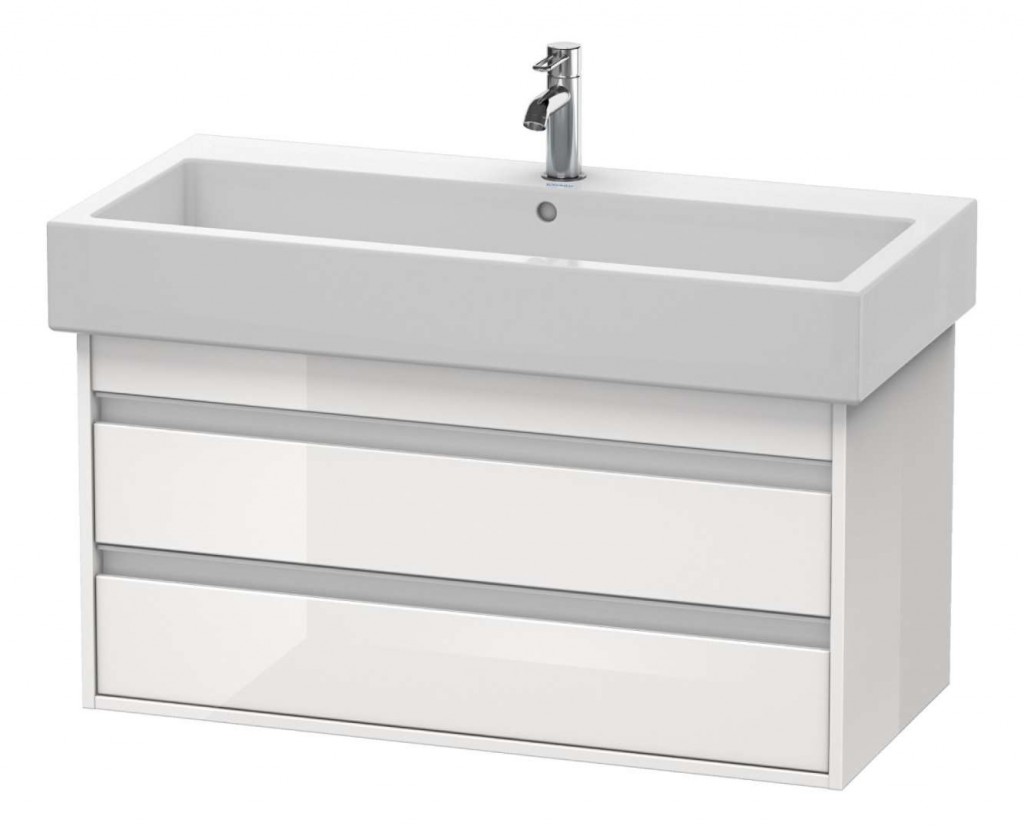 Závěsná skříňka pro umyvadlo rozměry: 480 x 950 x 440 mm materiál: vysoce kompaktní třívrstvá DTD, na obou stranách slisovaná s laminátem HPL, hrany ABS barva: bílá vysoký lesk 2 x zásuvka, horní zásuvka s výřezem pro sifon a krytkou sifonu ergonomické úchytky pro otevírání instalace: zavěšením na stěnu, sifon šetřící místo není součástí balení Ilustrativní foto, umyvadlo není součástí balení, je třeba objednat samostatně. (viz. související výrobky)