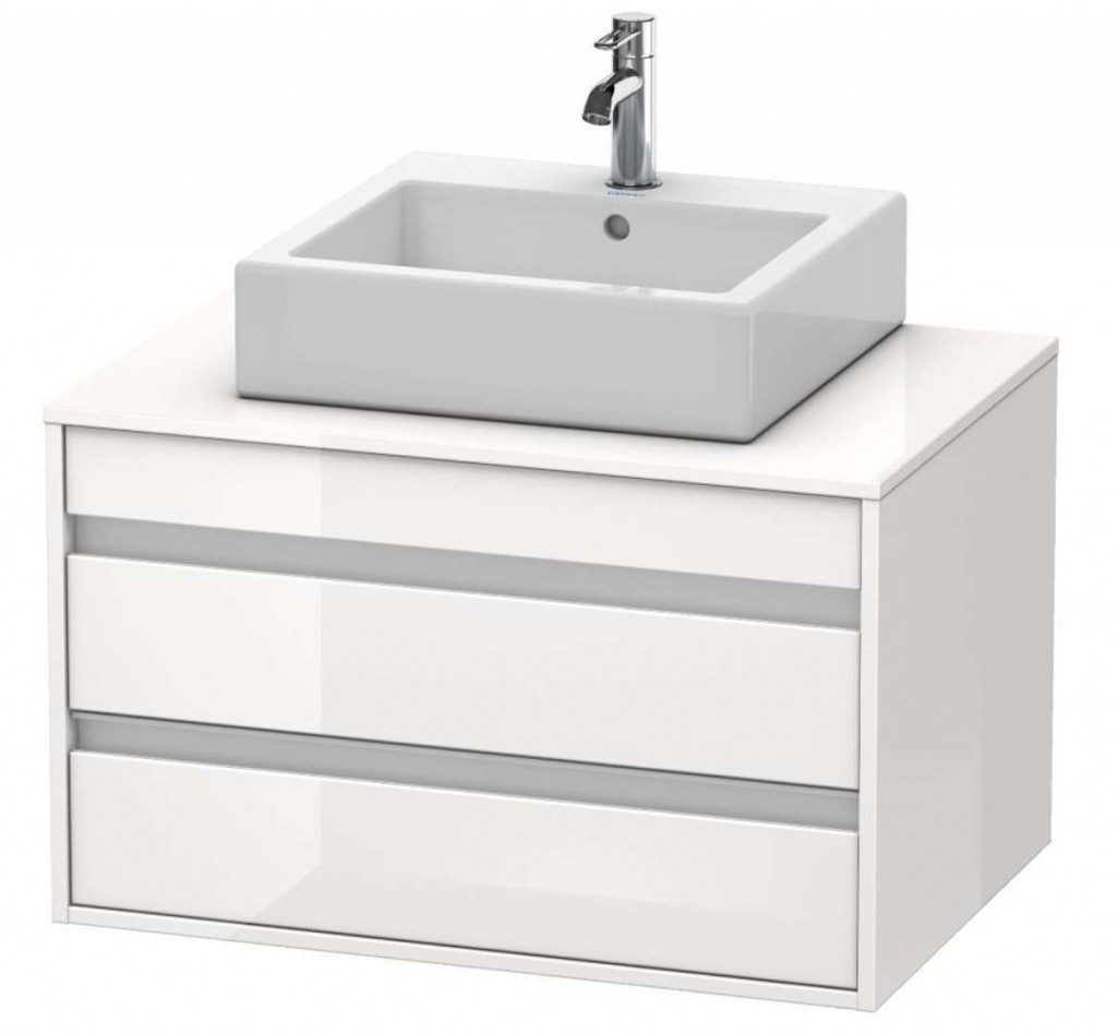 Závěsná skříňka pro umyvadlo na desku rozměry: 496 x 800 x 550 mm materiál korpusu: vysoce kompaktní třívrstvá DTD, na obou stranách slisovaná s laminátem HPL, hrany ABS 2 x zásuvka, horní zásuvka s výřezem pro sifon a krytkou sifonu barva: bílá vysoký lesk nosná horní deska s výřezem pro instalaci umyvadla uprostřed materiál desky: vysoce kompaktní třívrstvá DTD, na obou stranách slisovaná s laminátem HPL, hrany ABS ergonomické úchytky pro otevírání instalace: zavěšením na stěnu, sifon šetřící místo není součástí balení Ilustrativní foto, umyvadlo na desku není součástí balení, je třeba objednat samostatně.