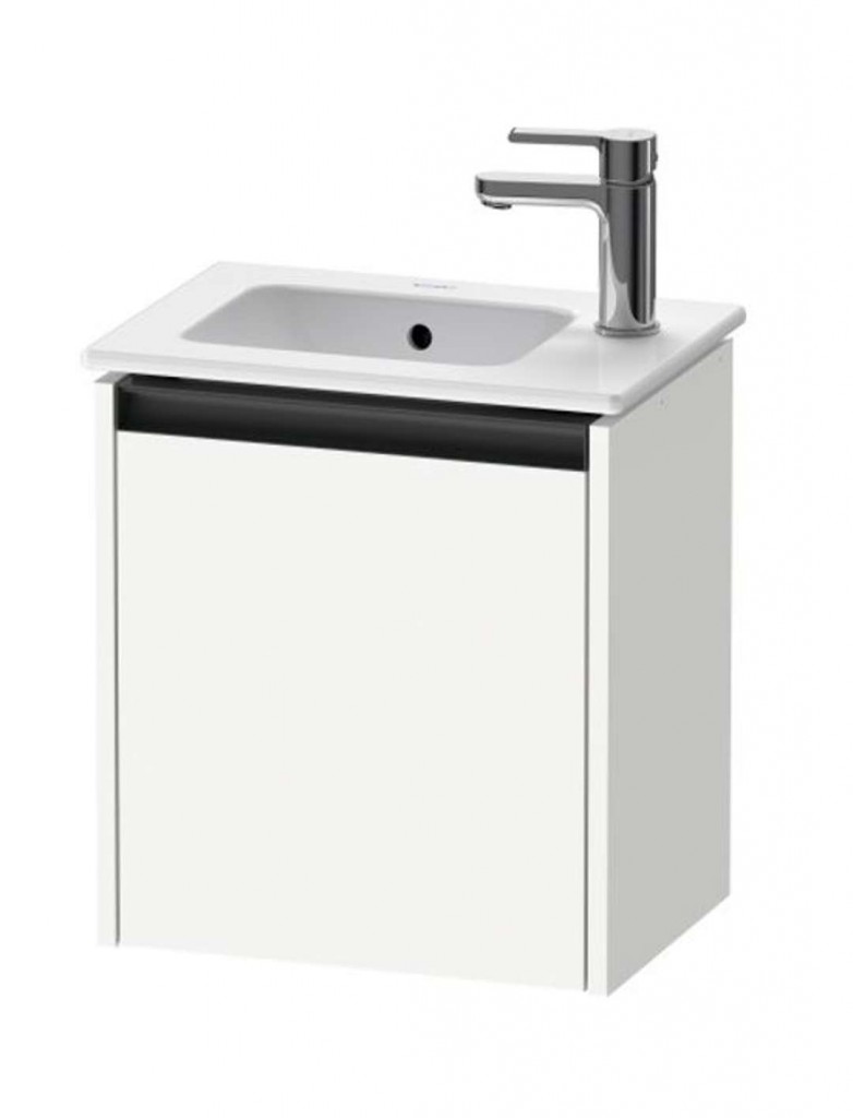 Skříňka pod umyvadlo barva vysoce lesklá bílá rozměry 440 x 410 x 292 mm pro umyvadlo ME by Starck materiál skříňky 3-vrstvá dřevotříska s vysokou hustotou materiál rukojeti hliník 1 dřevěná dvířka, panty vpravo závěsná nástěnná instalace odstup od stěny minimálně 20 mm Umyvadlo ani baterie nejsou součástí balení. Ilustrativní foto.