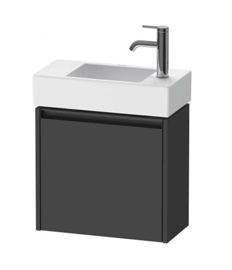 Skříňka pod umyvadlo barva grafit matt rozměry 440 x 484 x 238 mm pro umyvadlo Vero Air materiál skříňky 3-vrstvá dřevotříska s vysokou hustotou materiál rukojeti hliník 1 dvířka, panty vlevo závěsná nástěnná instalace odstup od stěny minimálně 20 mm Umyvadlo ani baterie nejsou součástí balení.