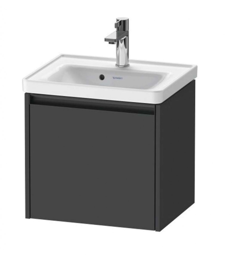 Skříňka pod umyvadlo barva grafit matt rozměry 440 x 484 x 375 mm pro umyvadla D-Neo materiál skříňky 3-vrstvá dřevotříska s vysokou hustotou materiál rukojeti hliník 1 zásuvka závěsná nástěnná instalace pro prostorově úsporný sifon Umyvadlo, baterie ani vnitřní vybavení nejsou součástí balení.