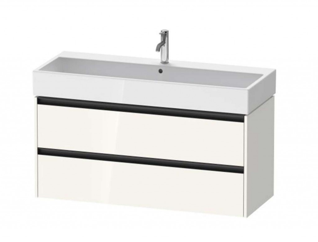 Skříňka pod umyvadlo barva vysoce lesklá bílá rozměry 549 x 1184 x 460 mm pro umyvadlo Vero Air vnitřní zásuvka včetně výřezu pro sifon materiál skříňky 3-vrstvá dřevotříska s vysokou hustotou materiál rukojeti hliník 2 zásuvky závěsná nástěnná instalace Umyvadlo ani baterie nejsou součástí balení.
