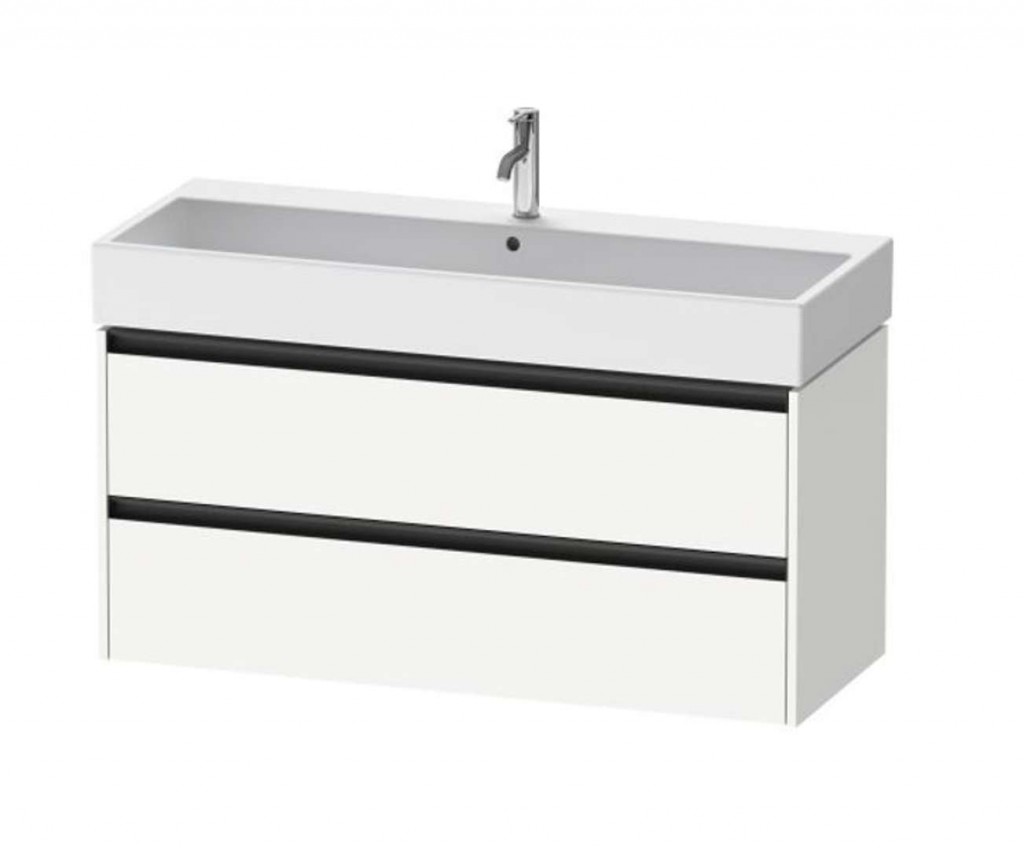 Skříňka pod umyvadlo barva matná bílá rozměry 549 x 1184 x 460 mm pro umyvadlo Vero Air vnitřní zásuvka včetně výřezu pro sifon materiál skříňky 3-vrstvá dřevotříska s vysokou hustotou materiál rukojeti hliník 2 zásuvky závěsná nástěnná instalace Umyvadlo ani baterie nejsou součástí balení.