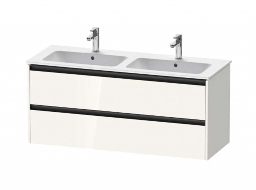 Skříňka pod dvojumyvadlo barva vysoce lesklá bílá rozměry 550 x 1280 x 480 mm vnitřní zásuvka s výřezem pro sifon pro umyvadla ME by Starck materiál skříňky 3-vrstvá dřevotříska s vysokou hustotou materiál rukojeti hliník 2 zásuvky závěsná nástěnná instalace Umyvadlo, baterie ani vnitřní vybavení nejsou součástí balení.