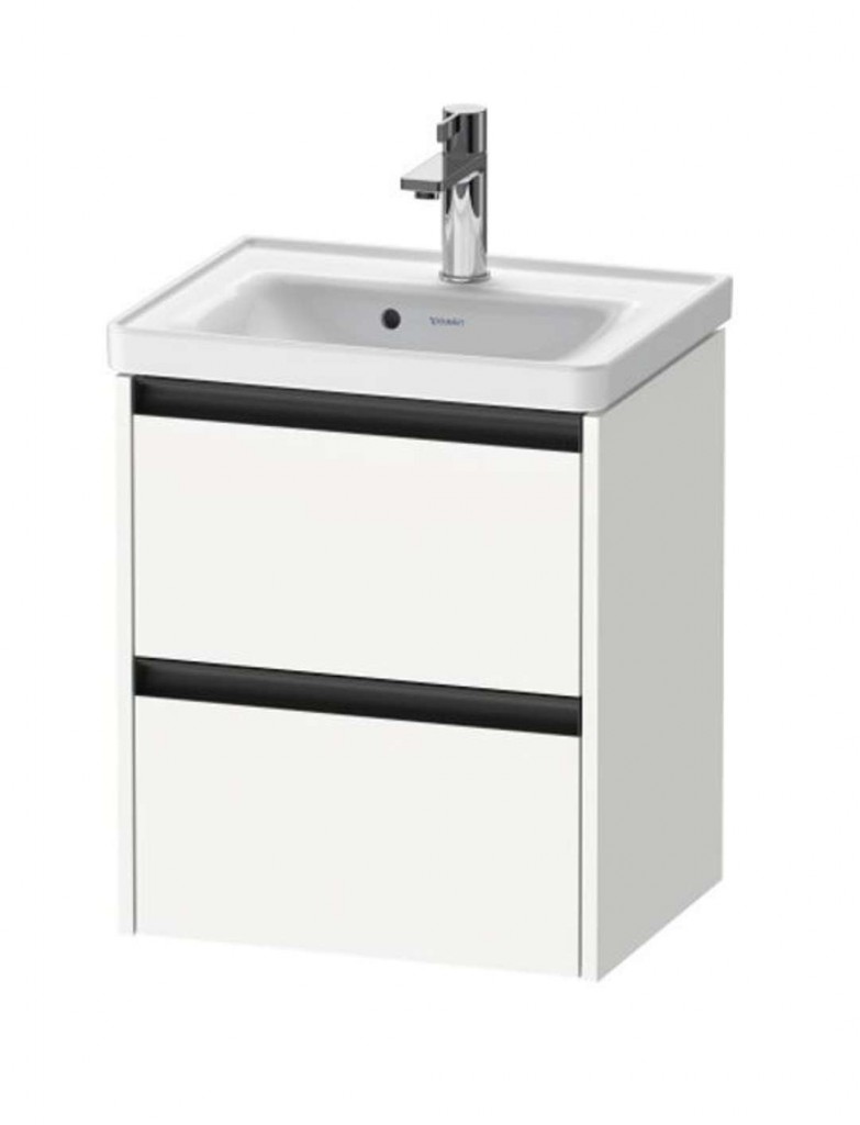 Skříňka pod umyvadlo barva matná bílá rozměry 549 x 484 x 375 mm vnitřní zásuvka s výřezem pro sifon pro umyvadla D-Neo materiál skříňky 3-vrstvá dřevotříska s vysokou hustotou materiál rukojeti hliník 2 zásuvky závěsná nástěnná instalace Umyvadlo, baterie ani vnitřní vybavení nejsou součástí balení.