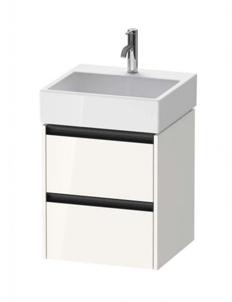 Skříňka pod umyvadlo barva vysoce lesklá bílá rozměry 549 x 484 x 460 mm pro umyvadlo Vero Air vnitřní zásuvka včetně výřezu pro sifon materiál skříňky 3-vrstvá dřevotříska s vysokou hustotou materiál rukojeti hliník 2 zásuvky závěsná nástěnná instalace Umyvadlo ani baterie nejsou součástí balení.