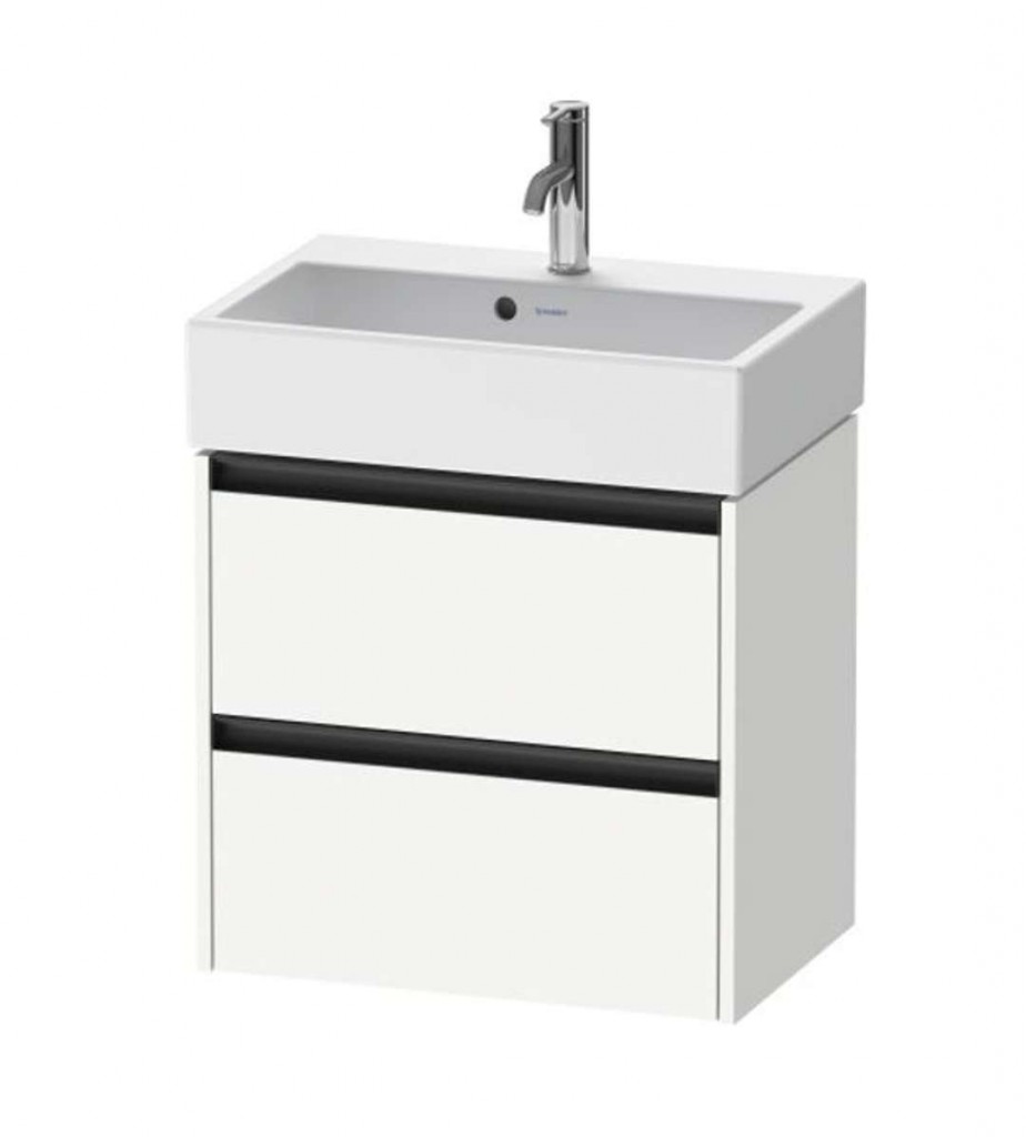 Skříňka pod umyvadlo Compact barva matná bílá rozměry 549 x 584 x 390 mm pro umyvadlo Vero Air vnitřní zásuvka včetně výřezu pro sifon materiál skříňky 3-vrstvá dřevotříska s vysokou hustotou materiál rukojeti hliník 2 zásuvky závěsná nástěnná instalace Umyvadlo ani baterie nejsou součástí balení.