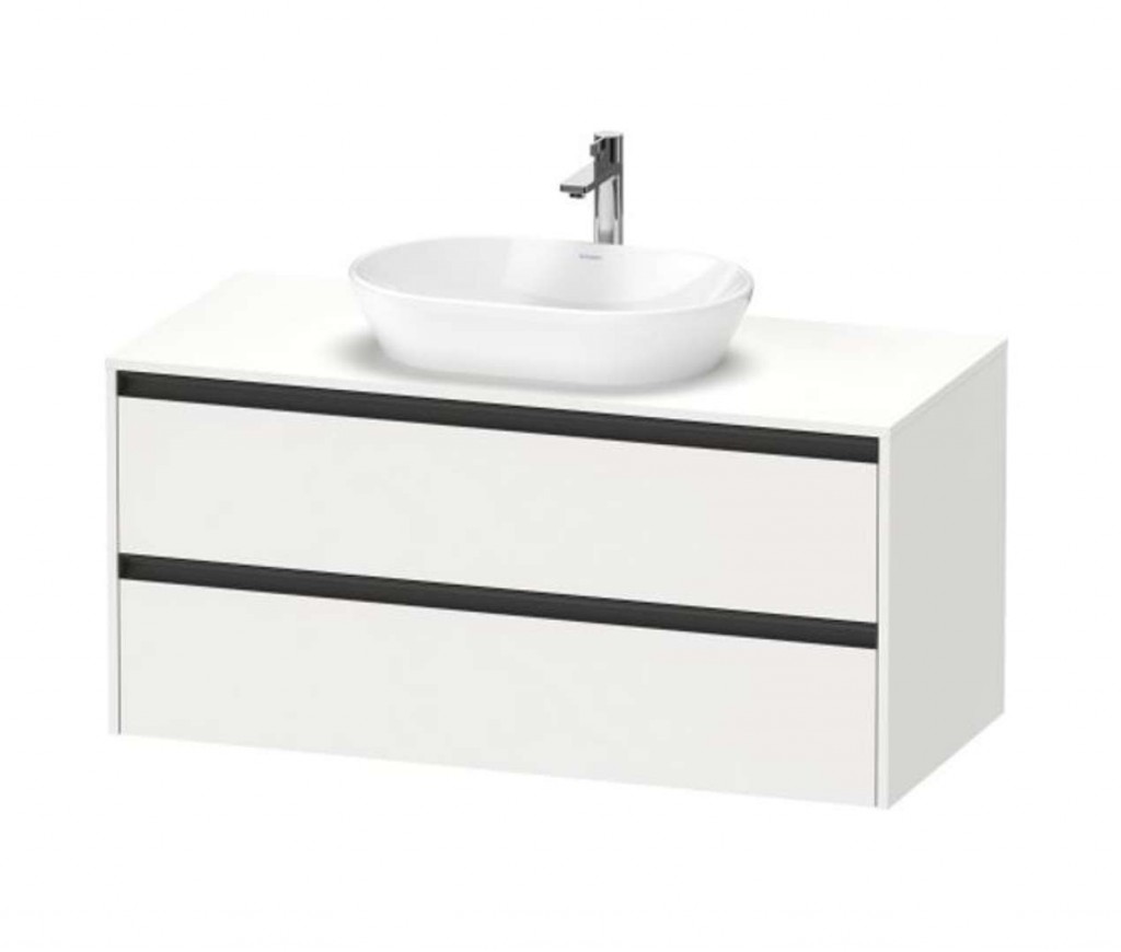 Skříňka pod umyvadlo barva matná bílá rozměry 568 x 1200 x 550 mm vnitřní zásuvka s výřezem pro sifon pro umyvadla na desku materiál skříňky 3-vrstvá dřevotříska s vysokou hustotou materiál rukojeti hliník 2 zásuvky závěsná nástěnná instalace pro prostorově úsporný sifon Umyvadlo, baterie ani vnitřní vybavení nejsou součástí balení.